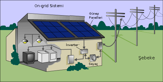They run as a grid connected system. There is no battery in order to storage the electric energy. Therefore, the generated electricity is used for the requirements immediately. The energy that is produced more than needs is transferred to the electricity grid and the missing energy is provided from the grid. Design of the inverter is special. Controlled energy can be transferred to the grid and the solar cell are operated in MPP. In addition to that inverters have to provide the grid requirements of energy and security quality. Thanks to this system, extra energy can be sold, so the cost can be decreased. There are 3 different type of these systems: Roof type (Residential), Building integrated and plant type systems.